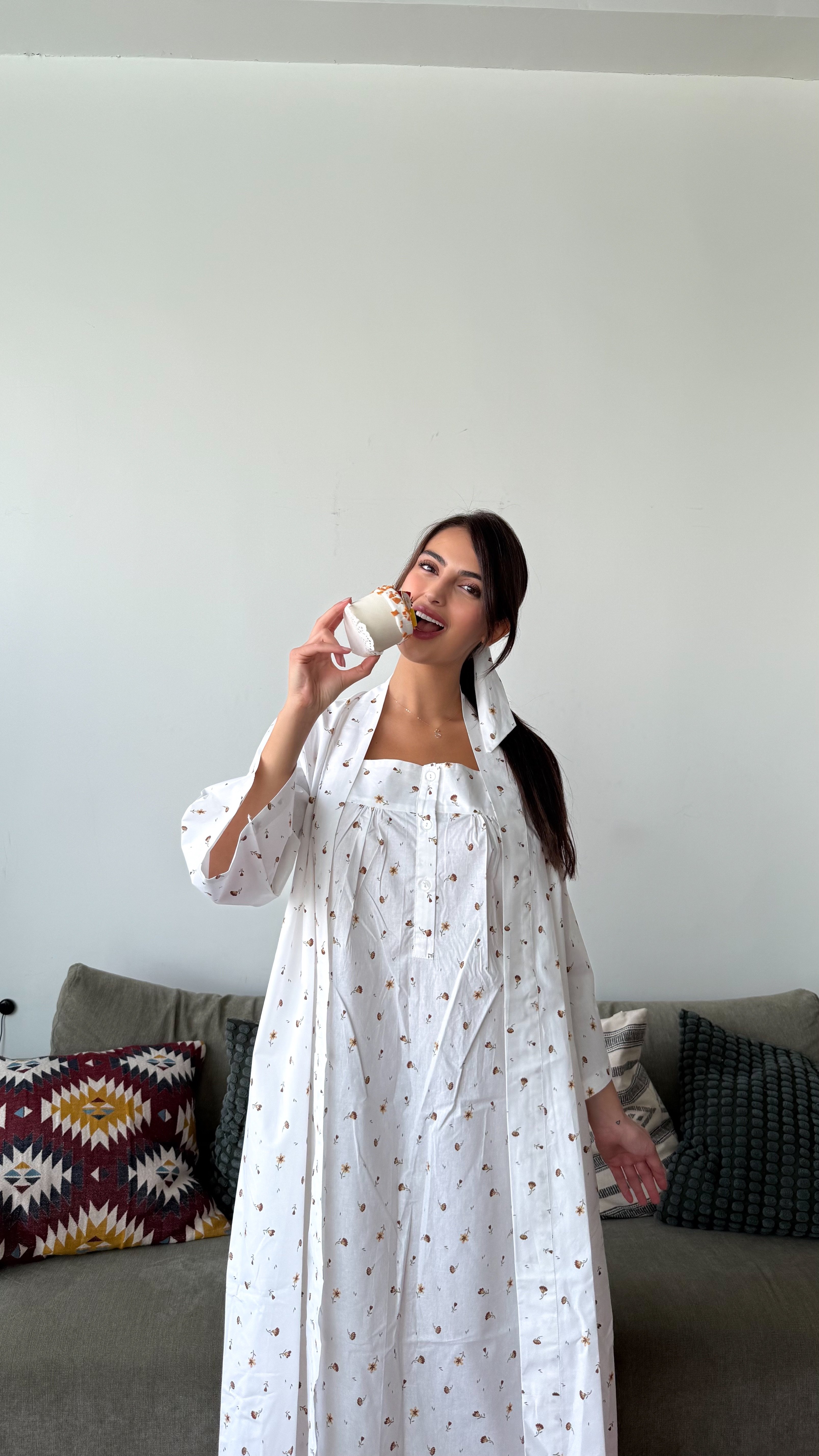 عباره عن قطعتين روب خارجي وفستان نوم داخلي